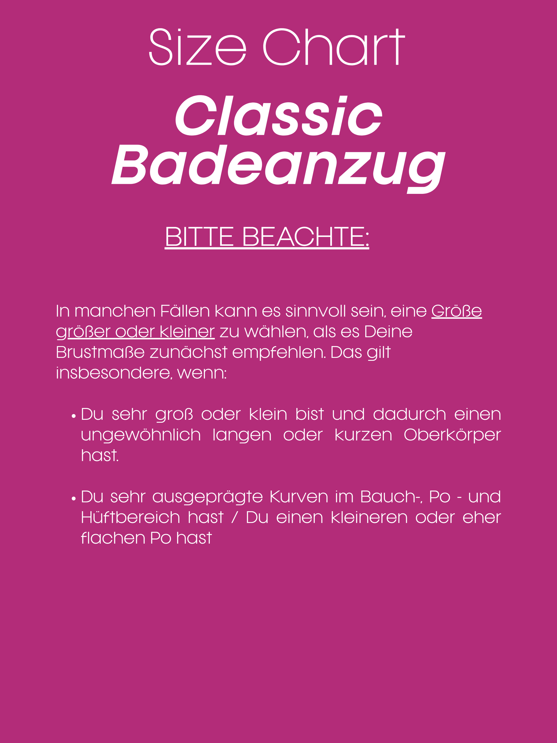 Der Badeanzug classic besticht durch sein reduziertes, elegantes Design. Ein besonderes Detail ist der feste Stoff, der dem Badeanzug auch ohne extra Nähte, Bügel oder Polster im Brustbereich eine schmeichelhafte Silhouette verleihen. Durch das etwas festere Material sorgt er für exzellenten Tragekomfort und eine ideale Passform im Brustbereich.