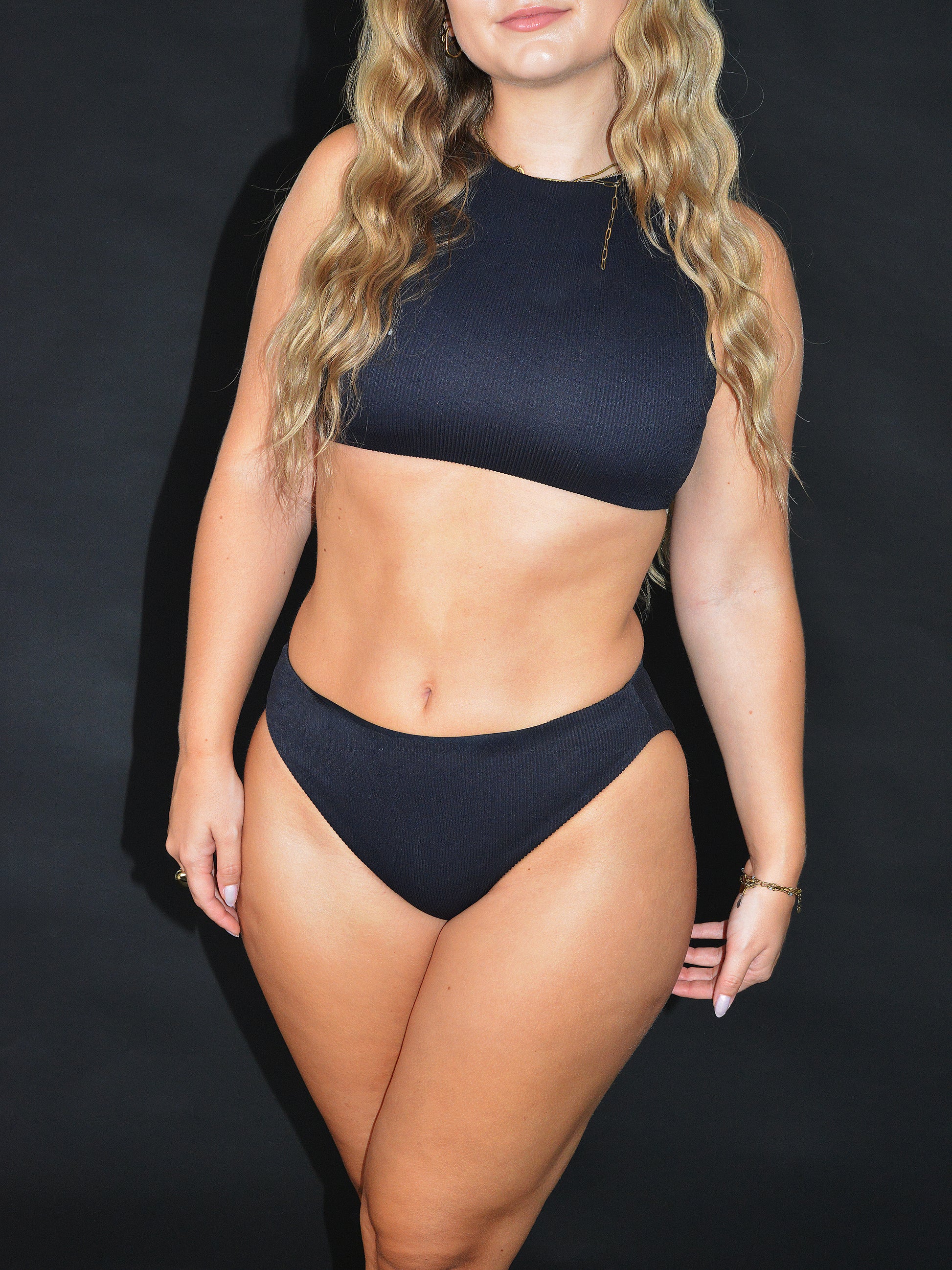 Das Bikini-Top Classic High punktet mit seinem hohen, eng anliegenden Halsausschnitt und der fast vollständig geschlossenen Vorderseite – ein eher seltener Look für ein Bikini-Oberteil. Im Rücken überrascht es mit einem tiefen Ausschnitt, der dem schlichten Design eine elegante Note verleiht. Die klare, reduzierte Form wirkt gleichzeitig lässig und zeitlos. Durch seine Vielseitigkeit eignet sich das Top nicht nur für den Strand, sondern auch perfekt als modisches Oberteil zu Jeans oder als bequemes Bustier beim Sport – ein wahres Multitalent.
