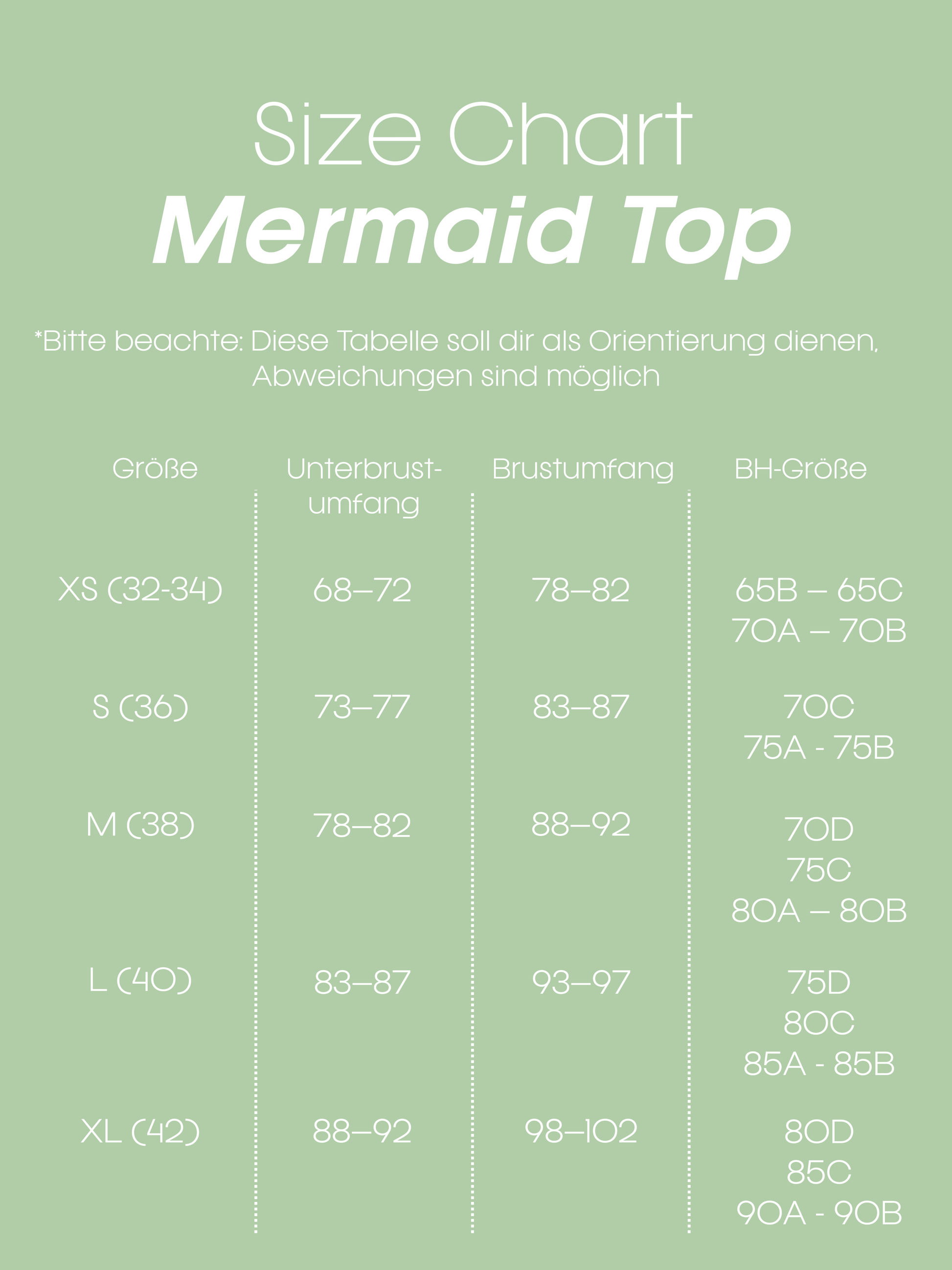 Das Bikini-Top Mermaid zeichnet sich aus durch seine Vielseitigkeit. Es besteht im Wesentlichen aus einem Bandeau-Top, welches mit vier einzelnen Trägerteilen ergänzt werden kann. Dieses Oberteil ist inspiriert von den modischen Elementen der 50ger Jahre und bringt den zeitlosen Retro-Look neu interpretiert zurück. Es kann mit Trägern oder trägerlos getragen werden. Das leuchtend hellgrüne Top ist auch noch in weiteren Farben erhältlich.